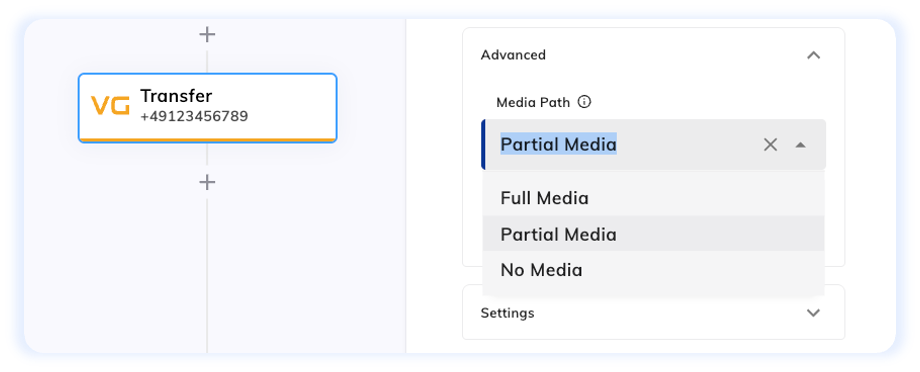 For the Dial option of the Transfer Node (Voice Gateway), we’ve revamped the Anchor Media parameter to Media Path.