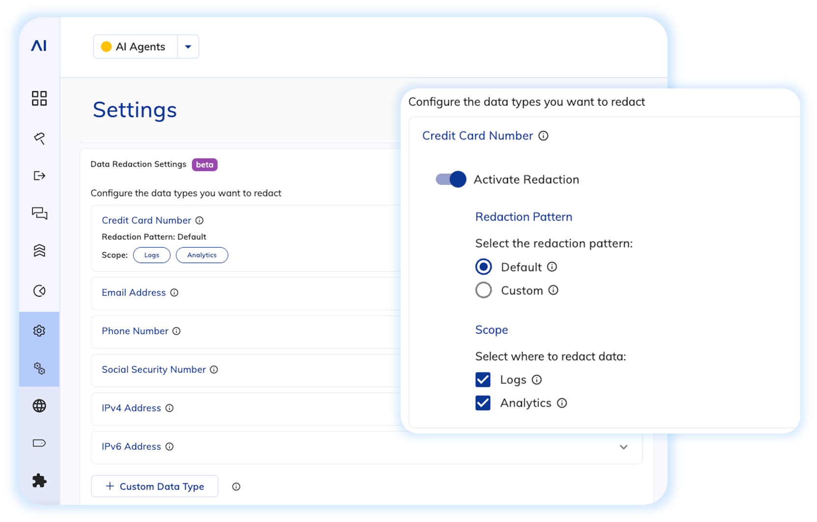This capability represents a significant upgrade over existing Blind Mode and Endpoint-level data masking options, which obscure entire logs and effectively disable analytics visibility. Instead of hiding all data, Data Redaction selectively removes only sensitive elements, preserving the surrounding conversational context and analytical value.