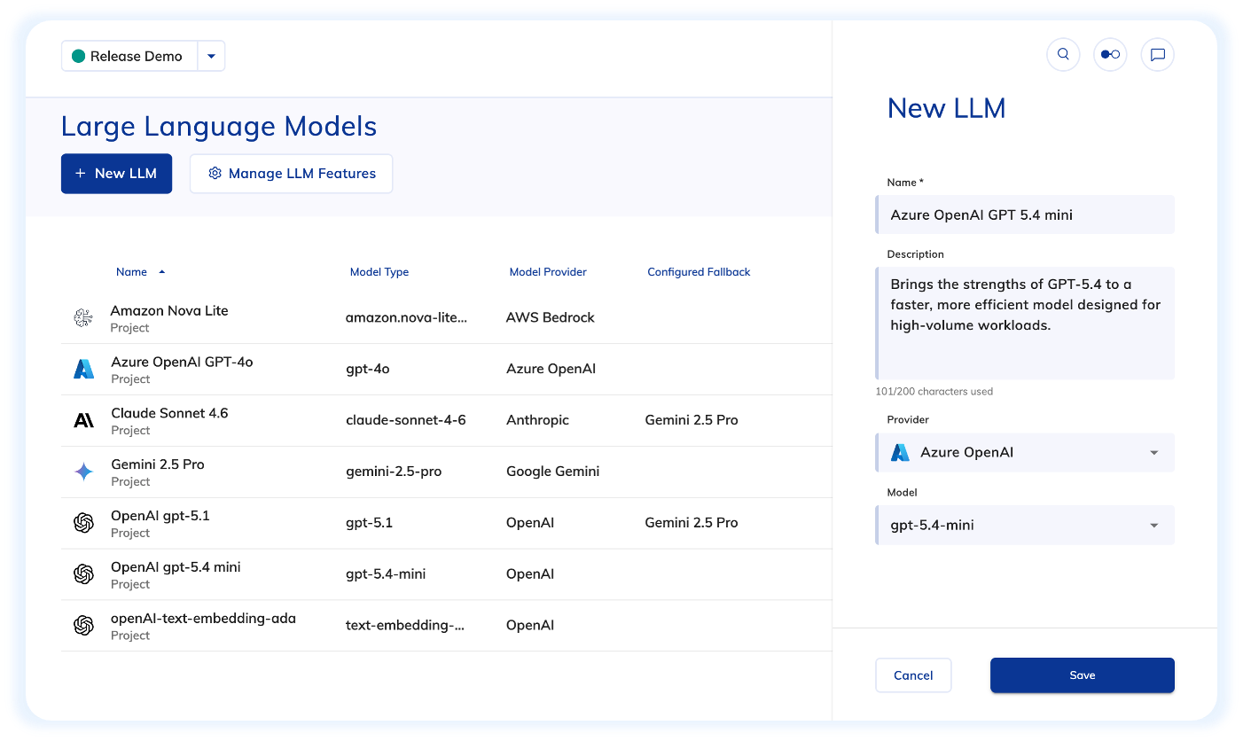 Following gpt-5-1 and claude-sonnet-4-6, we’ve added support for three new models from the GPT-5.4 family: gpt-5.4, gpt-5.4-mini, and gpt-5.4-nano, available for both OpenAI and Microsoft Azure OpenAI connections. These models are available immediately through the standard LLM provider configuration in Cognigy.