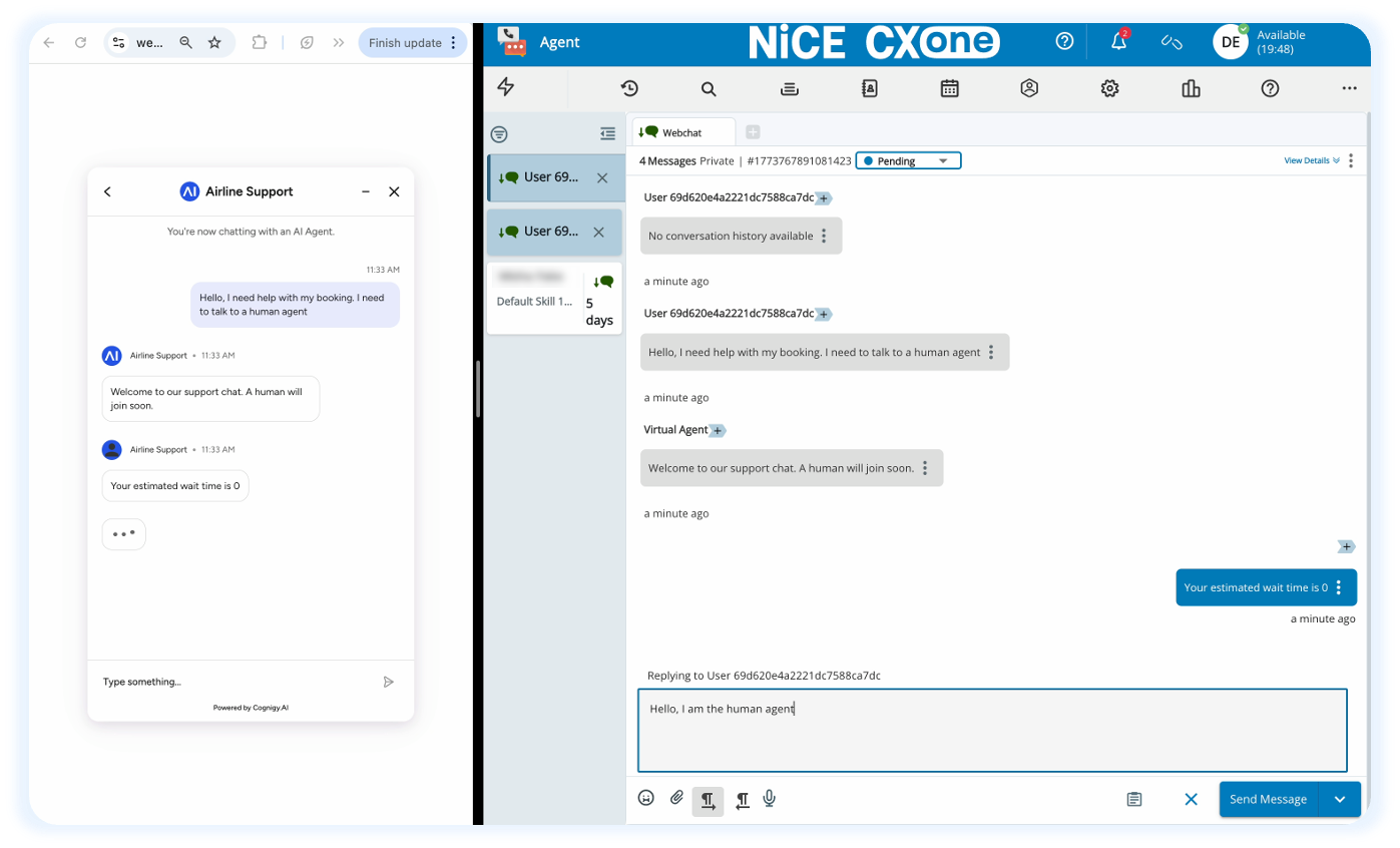 We’ve introduced a native Handover Provider for NiCE CXone, providing a streamlined, out-of-the-box option for human escalation to one of the most widely used contact center platforms in the enterprise market.