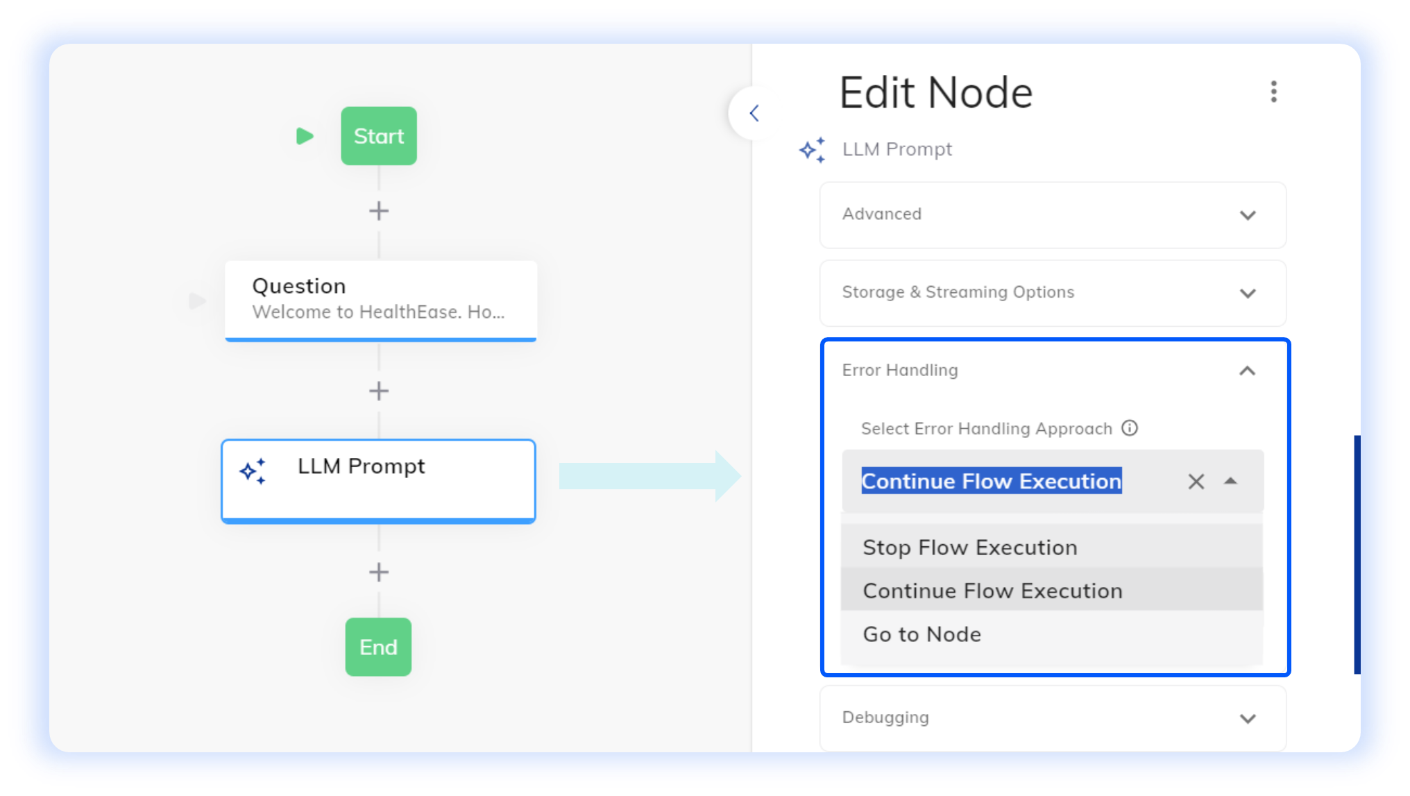 - Continue Flow Execution - allow AI Agents to bypass the error and proceed to the next steps.